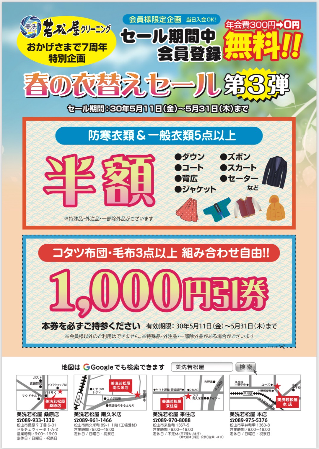 このチャンスにぜひ若松屋クリーニングにお越しください。